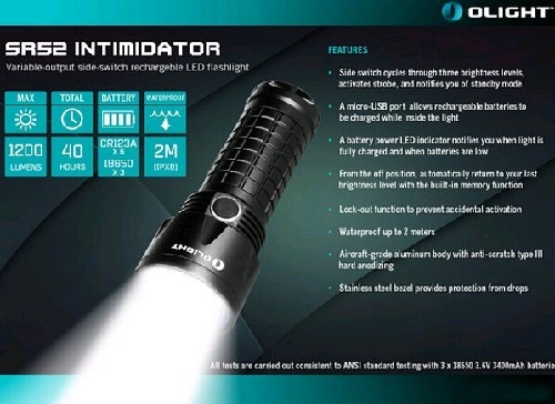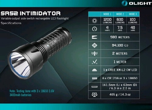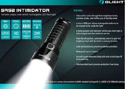 Главные особенности Olight SR 52 UT Intimidator:
