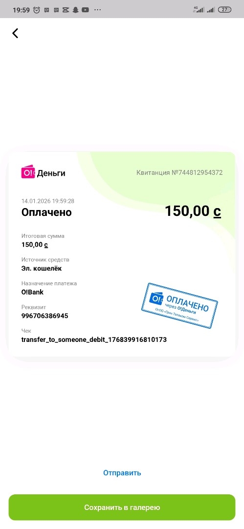Отправлен на номер