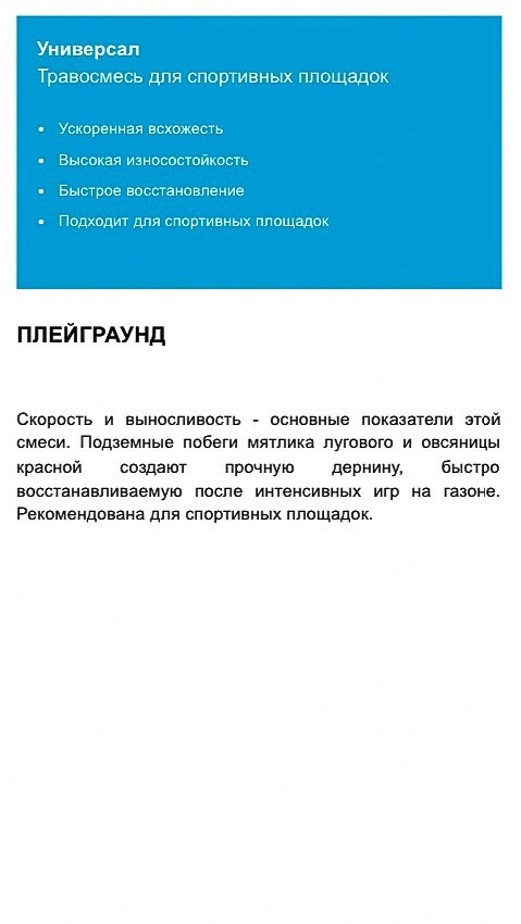 Скорость всхода и выносливость - основные показатели этой смеси.